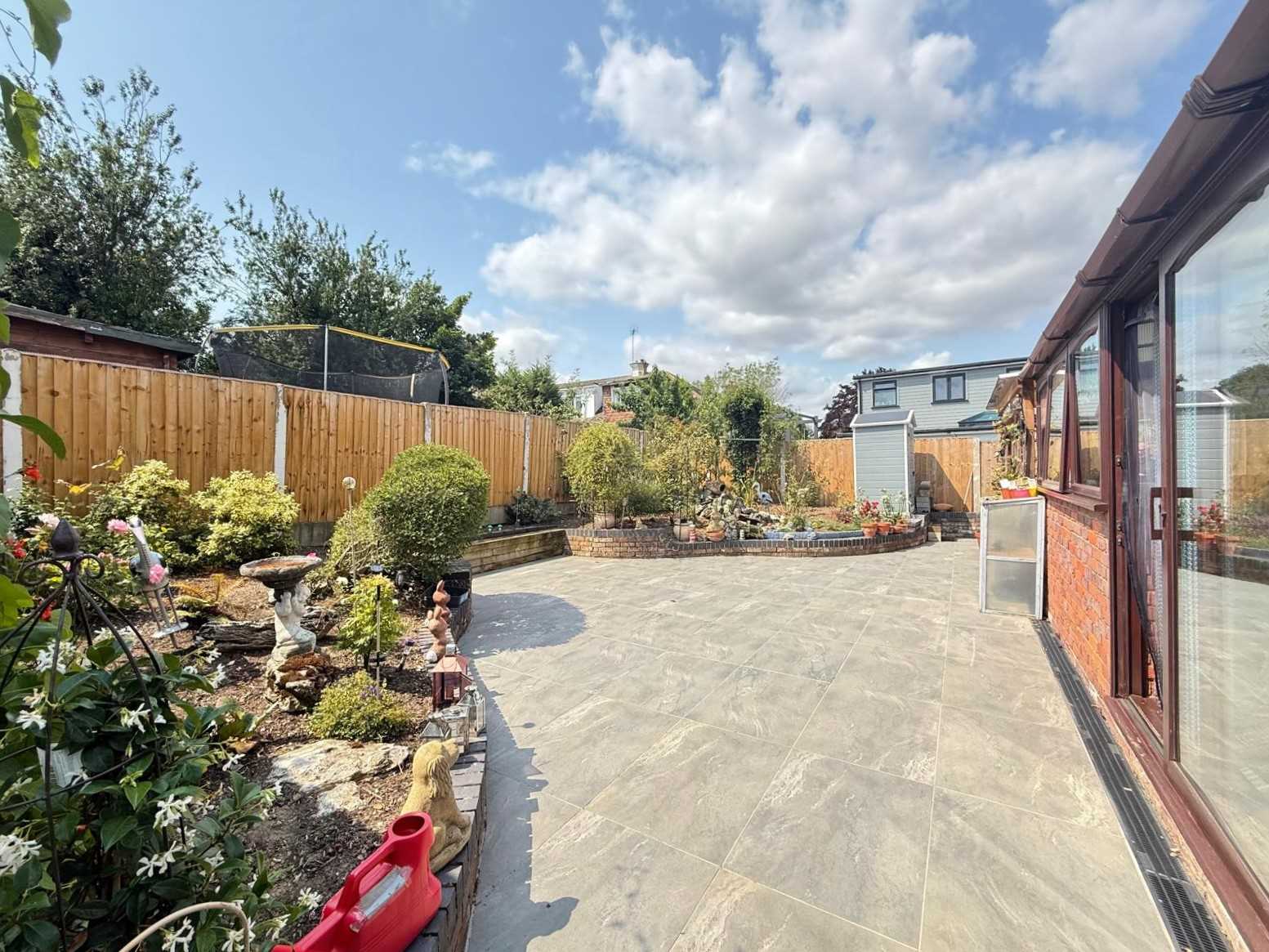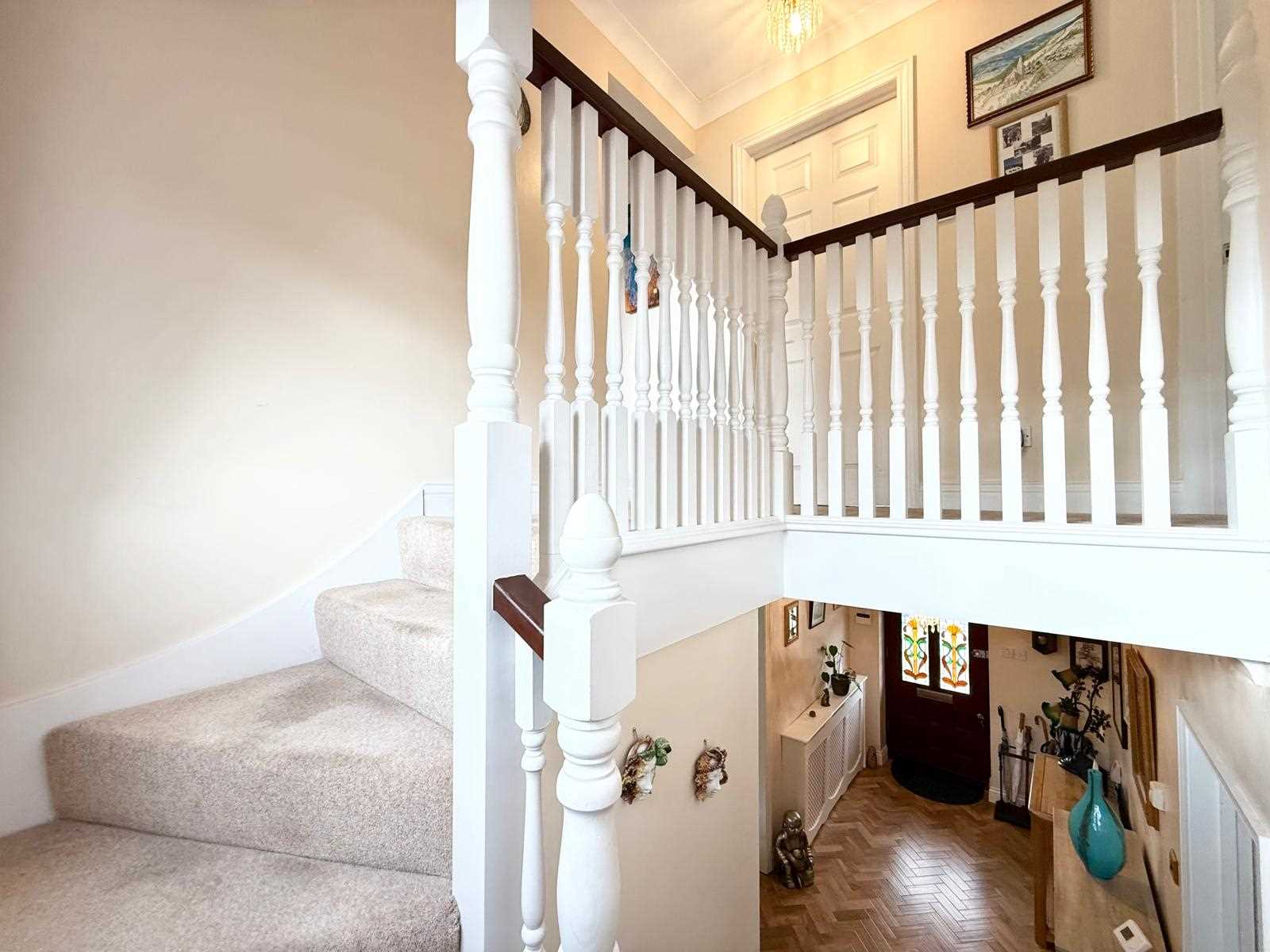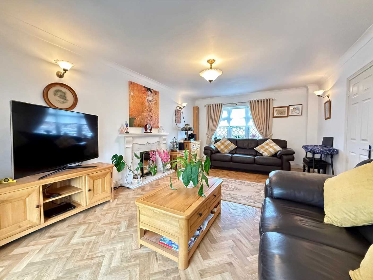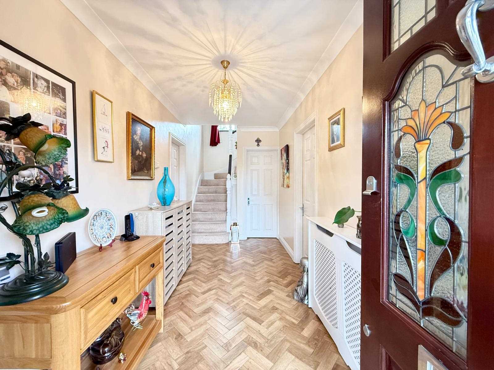 The welcoming entrance hallway features elegant flooring and provides access to all principal ground floor rooms. To the rear, a open-plan kitchen/diner has been thoughtfully designed with modern family living in mind, flowing seamlessly into a bright conservatory with sliding doors that open directly onto the south-facing garden. The stylish kitchen is fully fitted, while the conservatory provides a fantastic additional living space throughout the seasons.