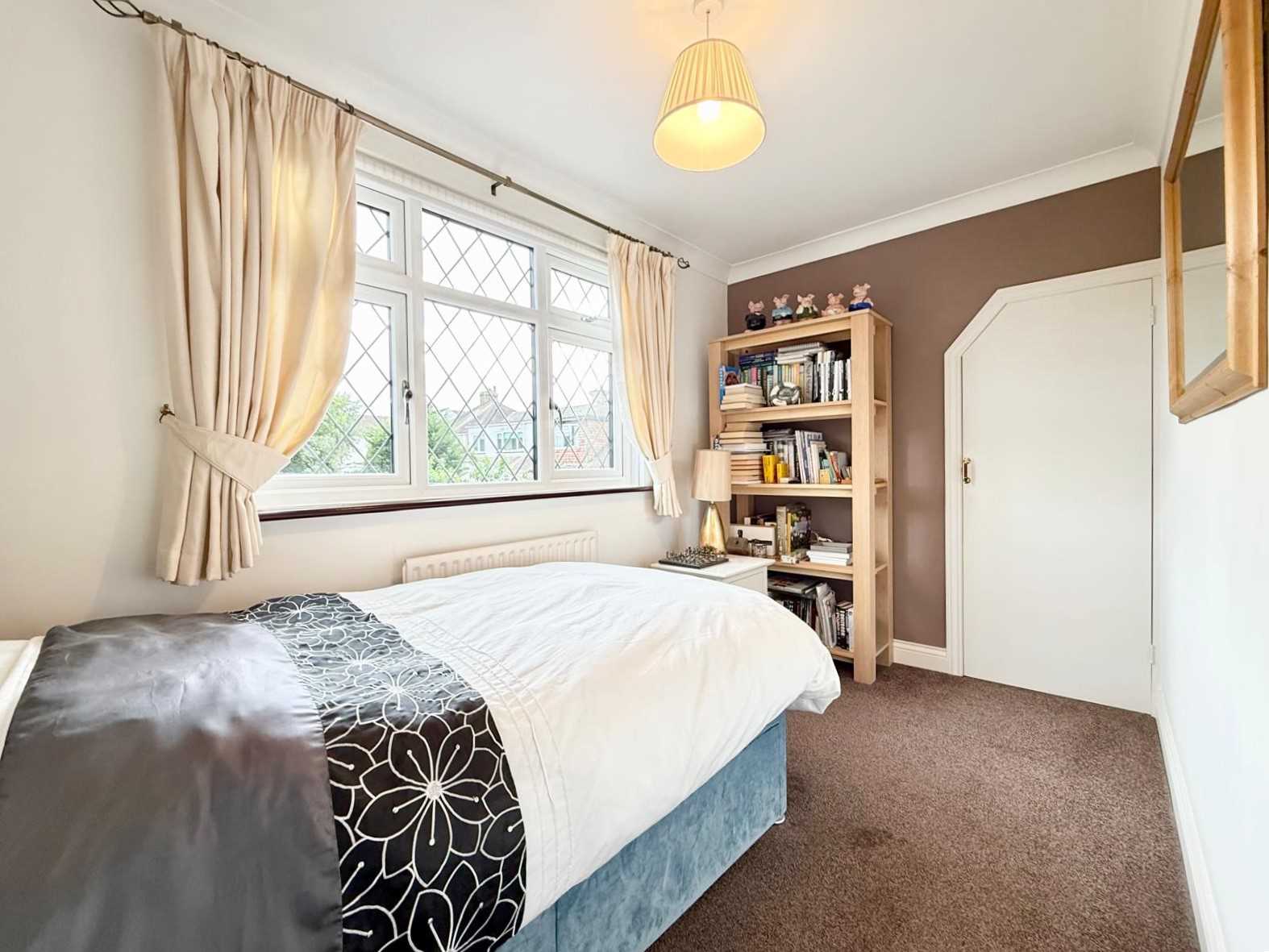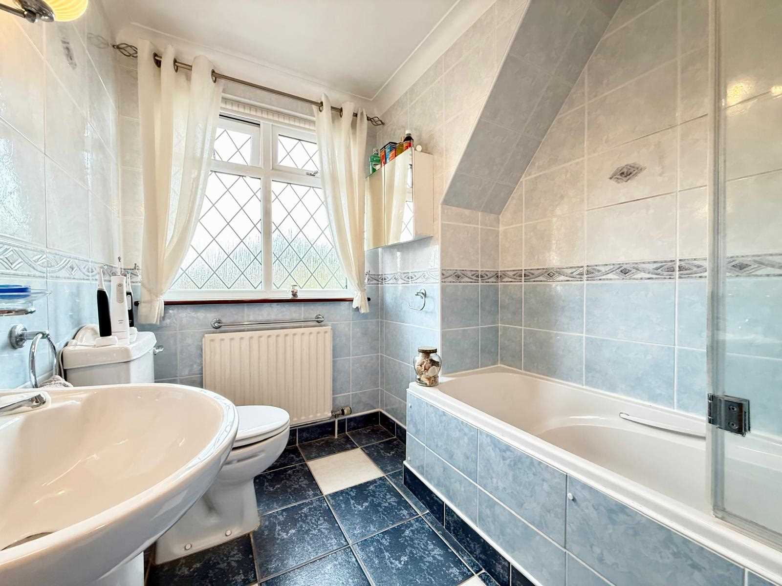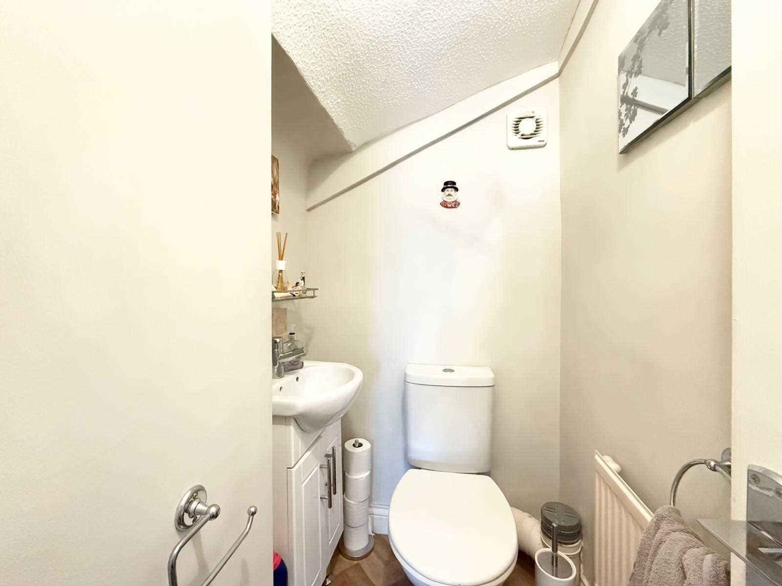 The spacious lounge is situated at the front of the home and features a central gas fireplace, remote-control blinds, and sliding doors that also lead to the garden, creating a lovely indoor-outdoor feel. A handy ground floor WC completes the downstairs layout. Upstairs, the first-floor landing leads to a well-appointed family bathroom and three bedrooms—two generous doubles and a comfortable single. Remote control blinds are fitted to all rooms bar the conservatory, adding both convenience and a contemporary touch.