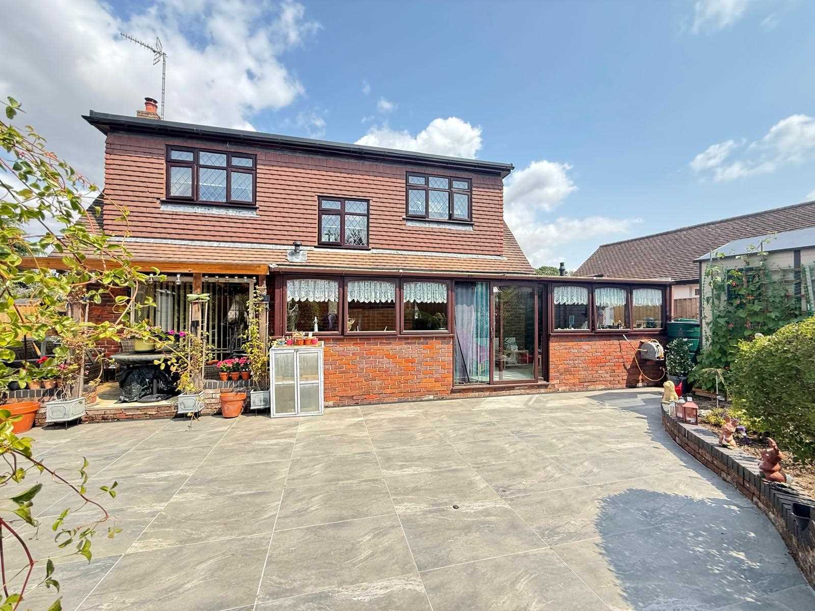 Outside, the rear garden enjoys a south-facing aspect and begins with a great size patio area bordered by raised brickwork and established planting. To the front, there is ample off-street parking, an attached garage (16'0 x 7'10 / 4.88m x 2.39m), and an electric vehicle charging point to the side of the property.