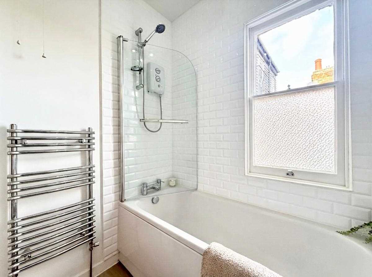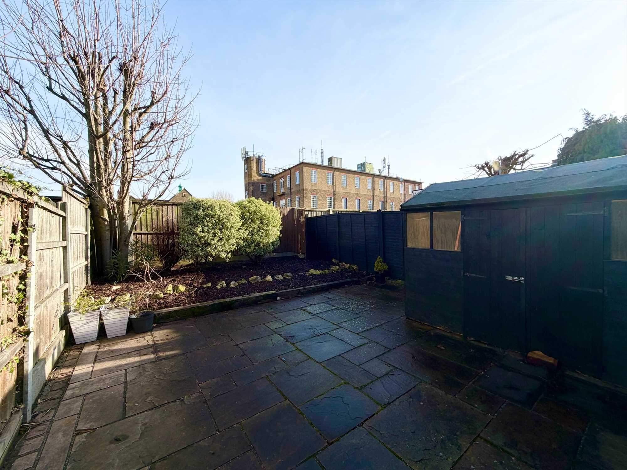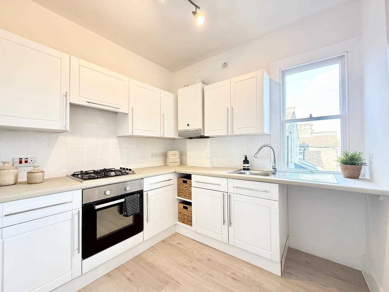 The property boasts a fitted kitchen complete with oven and hob, a modern white bathroom suite with shower, and two well-proportioned bedrooms. Further benefits include a superb patio-style garden, ideal for outdoor seating and entertaining.