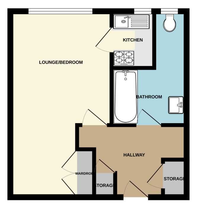 Studio Room: 20'6 x 12'1 (reducing to 10'5 into wardrobes)