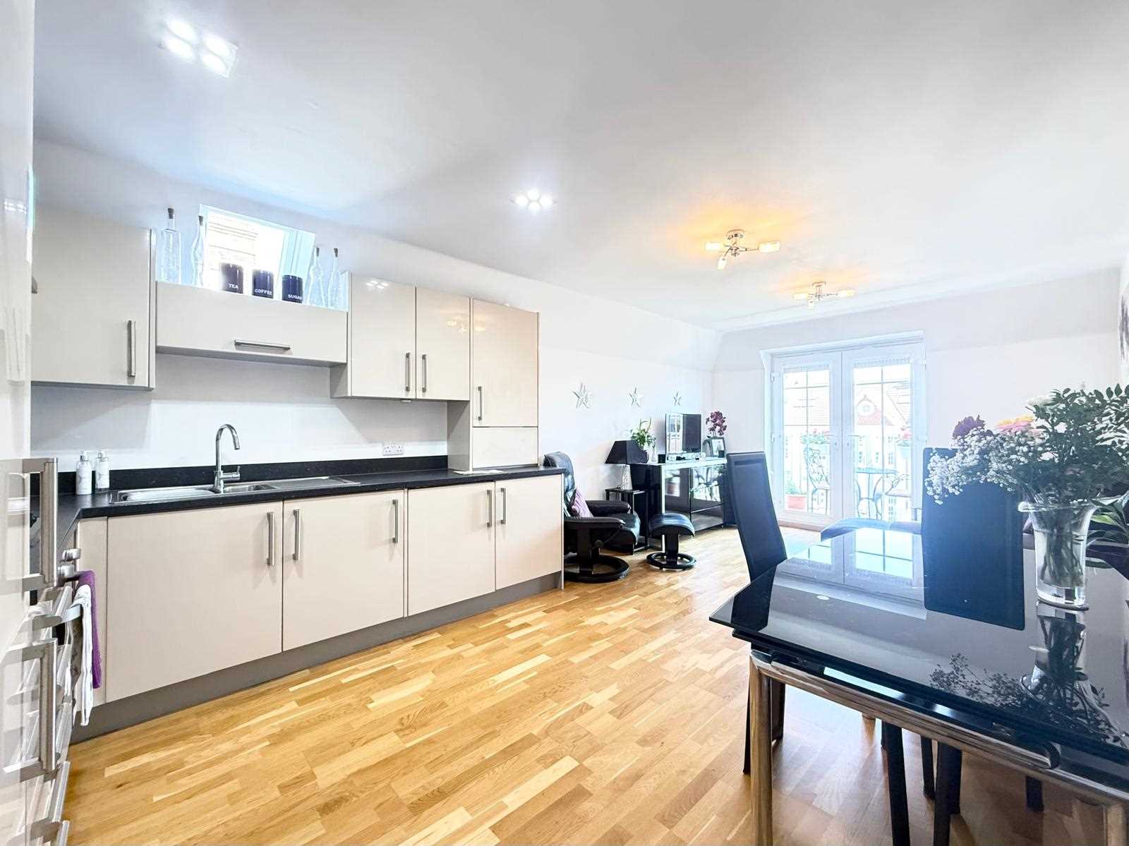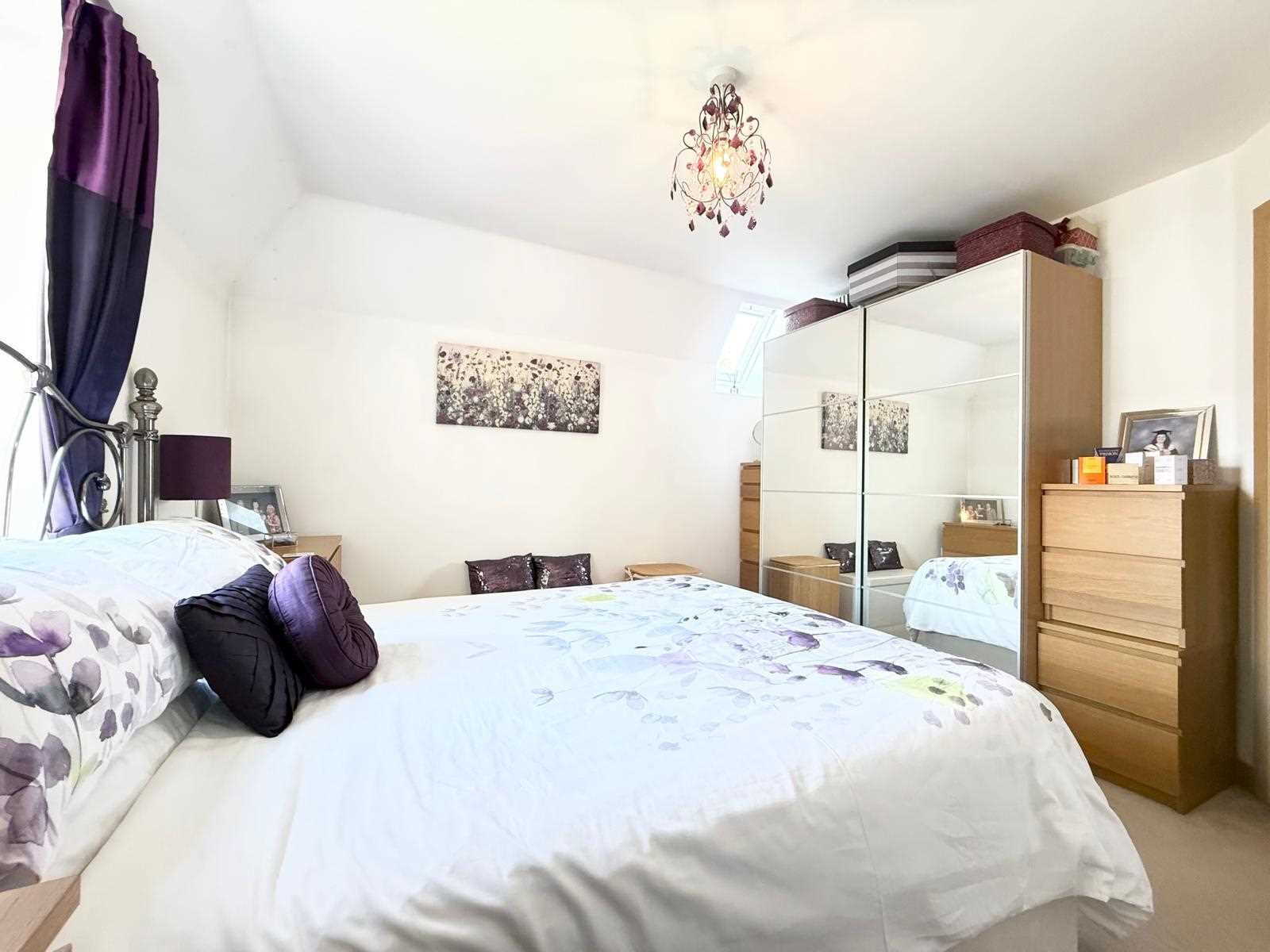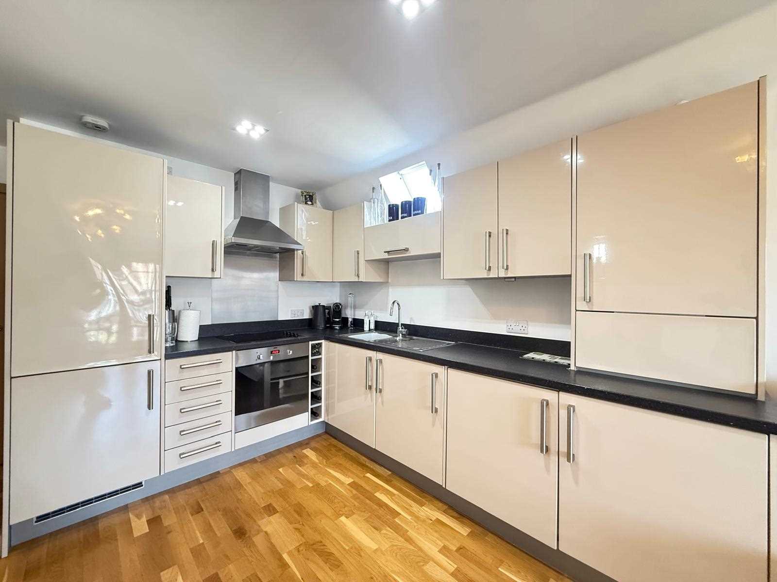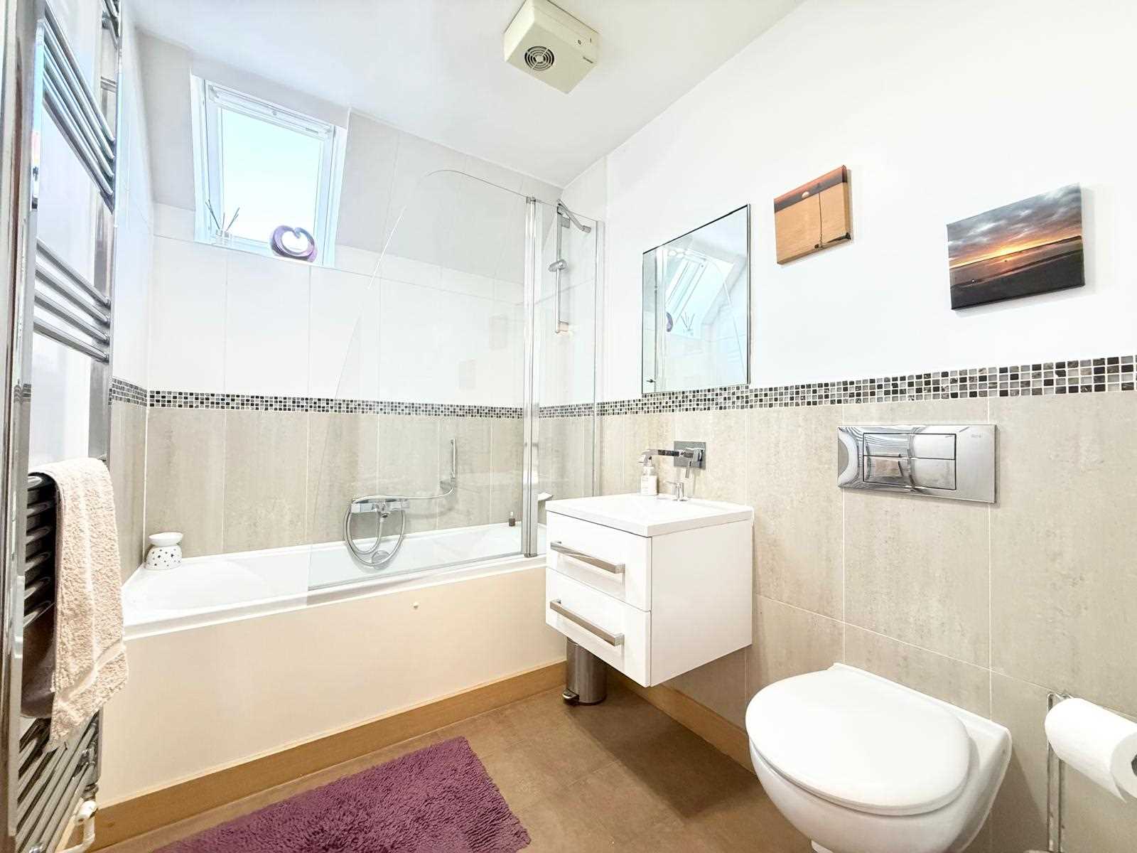 The spacious main bedroom benefits from its own private south-westerly balcony and a stylish en suite shower room. A generous second bedroom also enjoys a roof window, enhancing the sense of light and space throughout. In addition, there is a modern fitted bathroom, again complemented by a roof window. Further benefits include well maintained communal gardens, two parking spaces, one of which is secure underground parking and the other to the front of the development.